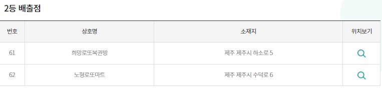 추가로 강원 정선군, 춘천시, 음성군, 당진시, 서산시, 아산시, 부안군, 익산시, 전주시, 경산시, 예천군, 거제시, 창원시, 함안군에서 당첨되었으며