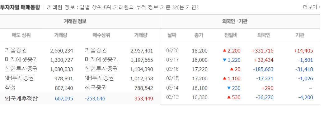 최근 외국인과 기관의 매수세가 들어왔고